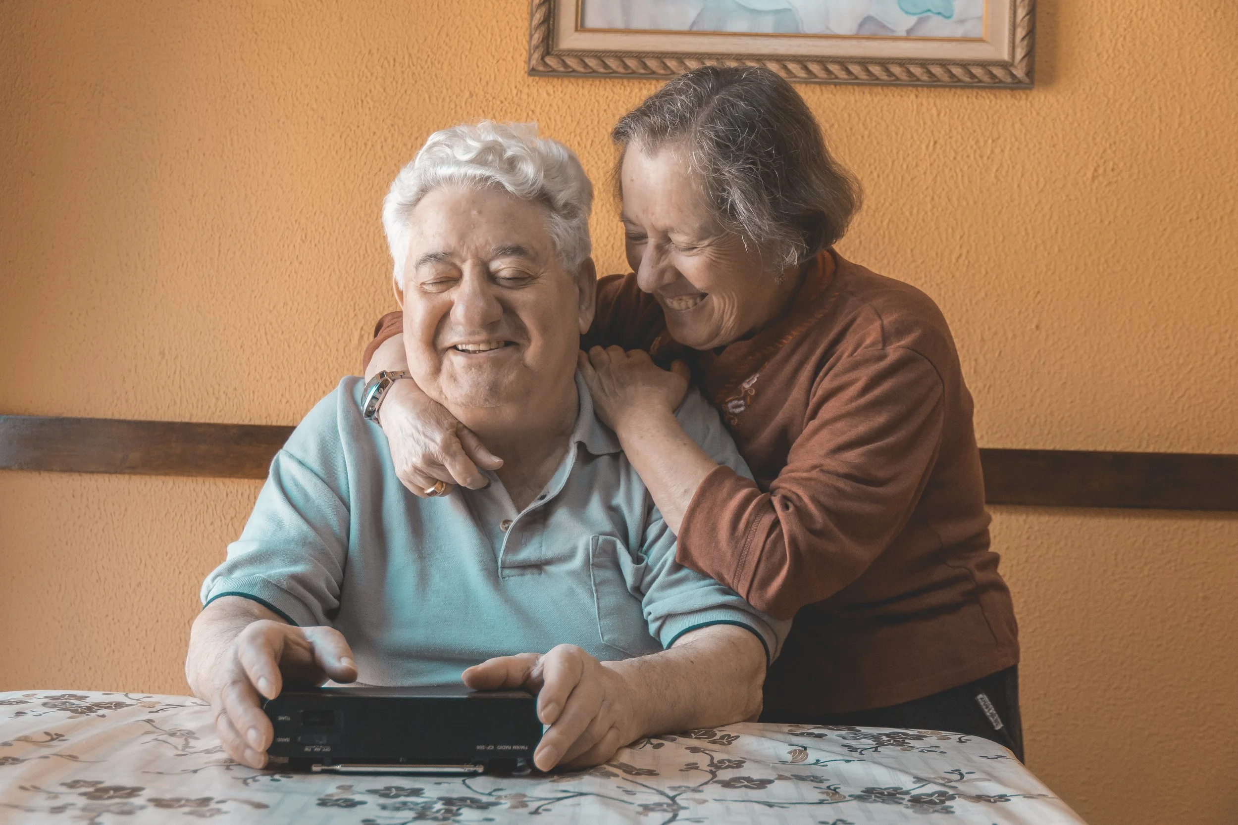 En esta serie de fotos he querido retratar a mis padres, los dos con ceguera total, en un entorno familiar y acogedor, que es mi casa.